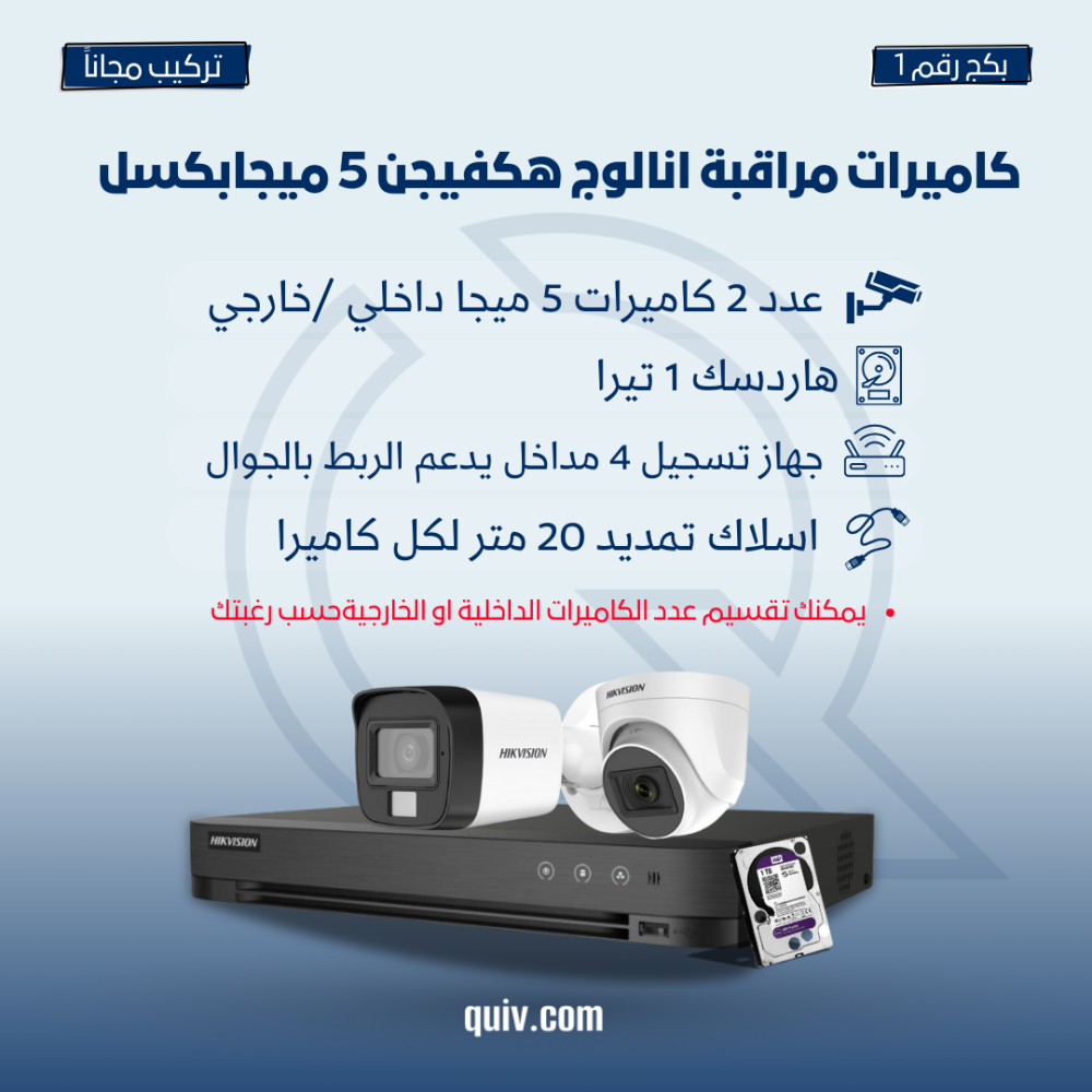 بكج كاميرات أنالوج 5MP – دقة Full HD ومدى رؤية حتى 60م