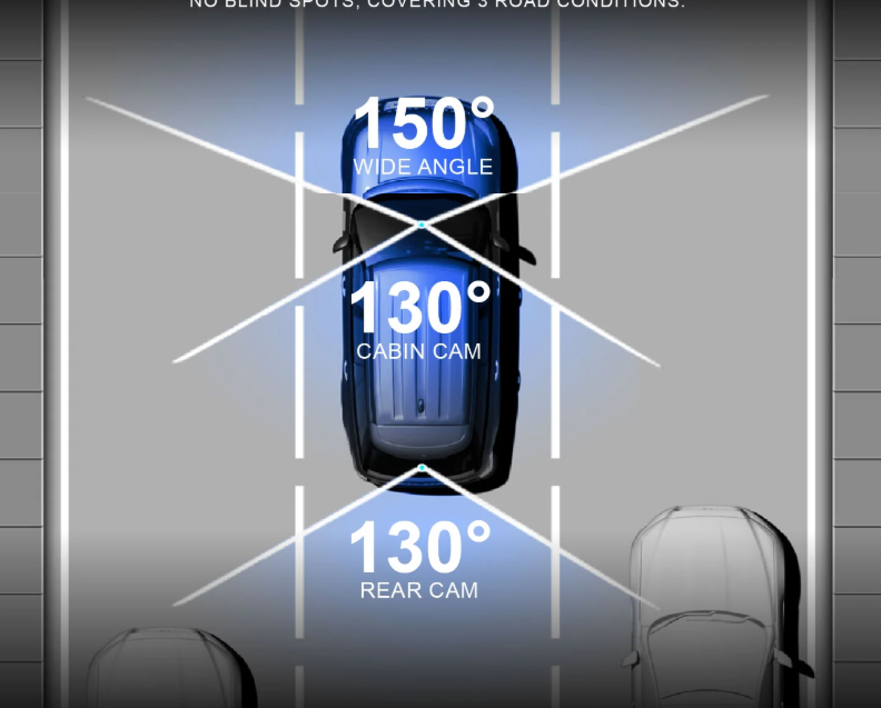 زاوية رؤية واسعة: أمامية 150°، داخلية 130°، خلفية 130° لتسجيل كل التفاصيل.