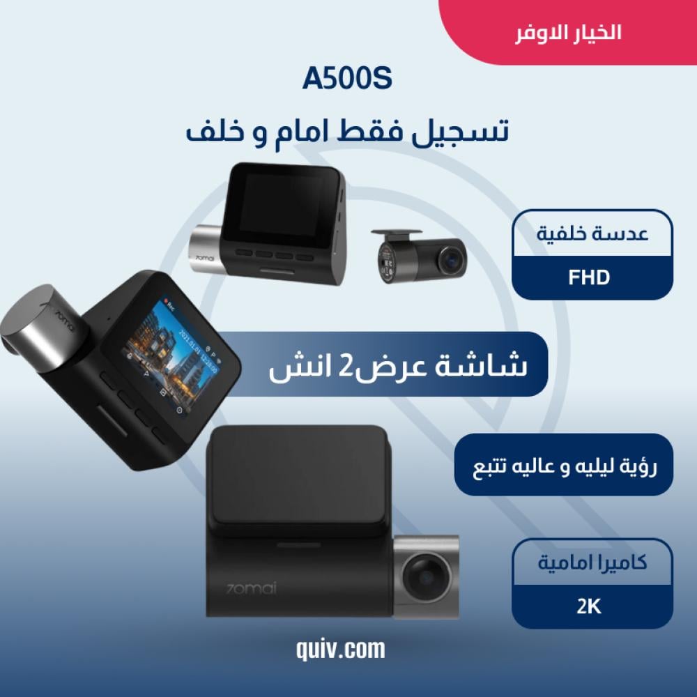تفوّت الفرصة وارتقِ بأمان سيارتك مع أفضل داش كام شاومي a500s Cam Pro Plus. جودة تصوير مذهلة، تقنيات أمان متطورة، تحكم ذكي عبر جوالك، وكل هذا بسعر مثالي، اطلبها الآن من متجر كويف قبل نفاد الكمية، واستمتع براحة البال في كل رحلة.