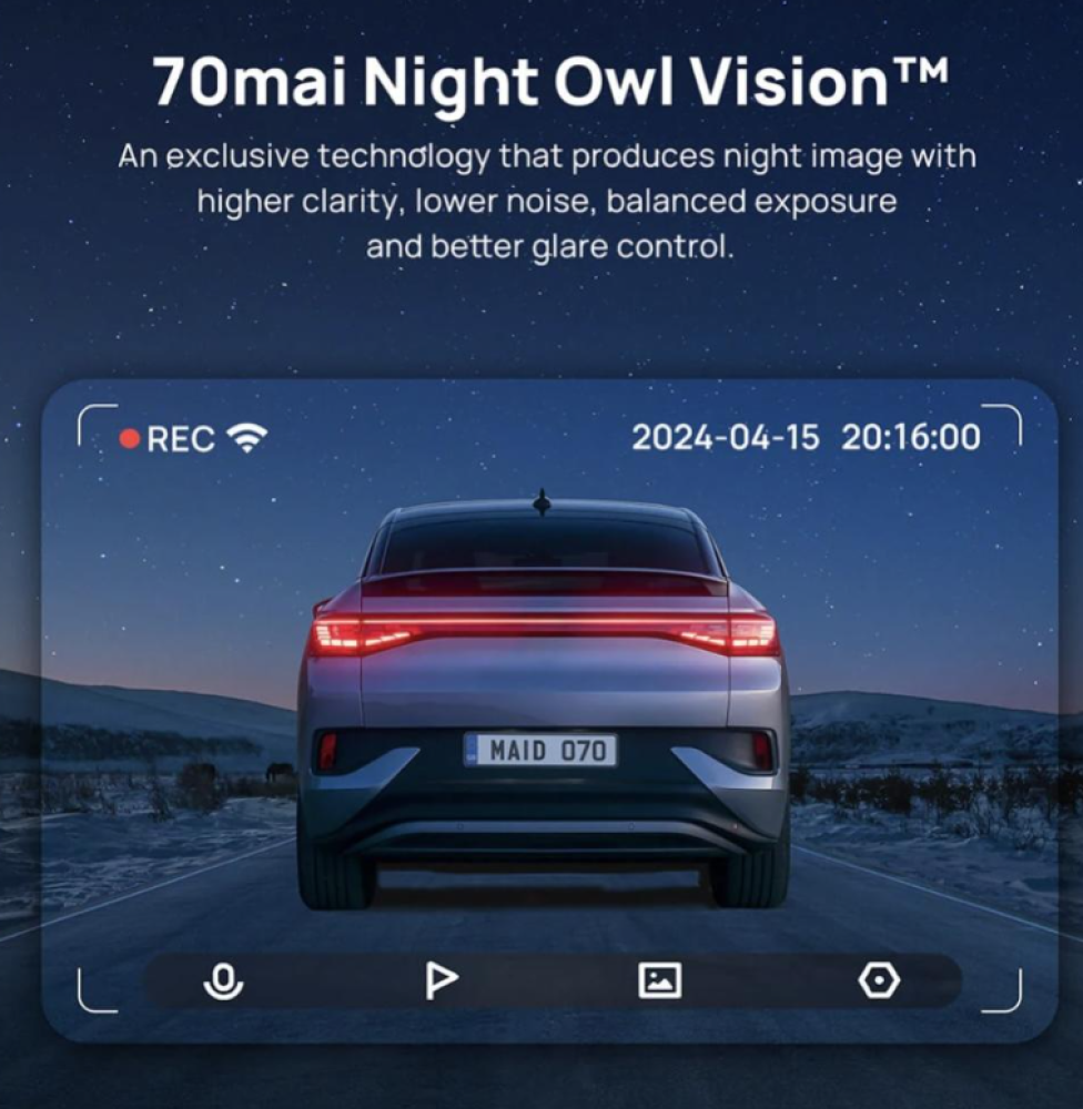 - تتميز افضل داش كام أمامية وخلفية بفتحة عدسة F1.8 التي تعزز من جودة الرؤية الليلية بشكل ملحوظ، مما يضمن لك الحصول على صور واضحة ودقيقة الألوان سواء في ضوء الشمس أو في الظلام، لتكون رحلتك دائماً موثقة بتفاصيل مثالية.